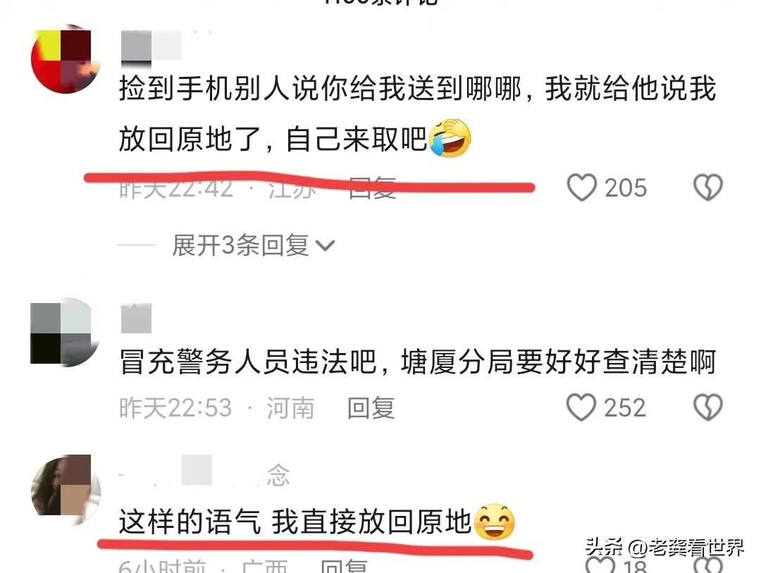 女子单纯的以为对方是丢手机后报警了,所以在该分局。结果对方自爆身份,“没报警,我本来就是塘某分局的。”