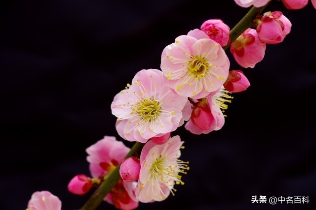 2. 粉皮宫粉:粉皮宫粉也是早花品种之一,它的开花时间和江梅差不多,在12月下旬到1月上旬左右。粉皮宫粉的花朵是粉红色的,花瓣比较厚实,层层叠叠,呈复瓣状。它的花朵比江梅稍微大一些,花朵密集地长在枝头,远远望去,就像一片粉色的云霞,特别漂亮。在福建的一些梅花种植园,粉皮宫粉开花的时候,那场面别提多壮观了。