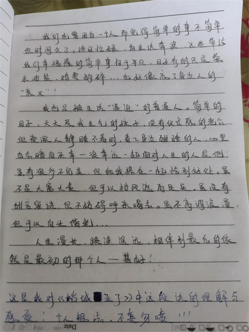 我也是被生活“逼迫”的普通人。简单的日子、天天惹我生气的孩子、没有仪式感的老公…但夜深人静睡不着时,看看身边酣睡的人,心里也会暗自庆幸——很幸运一起面对人生的人是他!虽有很多不完美,但和我搭在一起恰到好处。虽不是大富大贵,但可以挡风遮雨足矣。虽没有甜言蜜语,但不妨碍呼来喝去。虽不高调浪漫,但可以白头偕老…