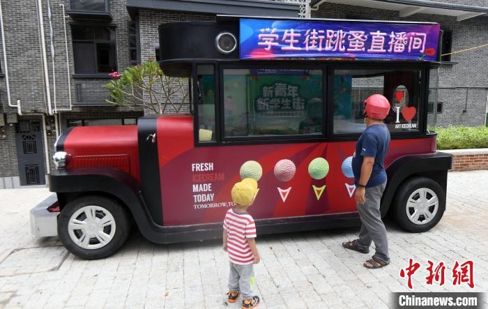 设立于福州学生街特色街区的“跳蚤直播间”吸引游客的目光。 刘可耕 摄
