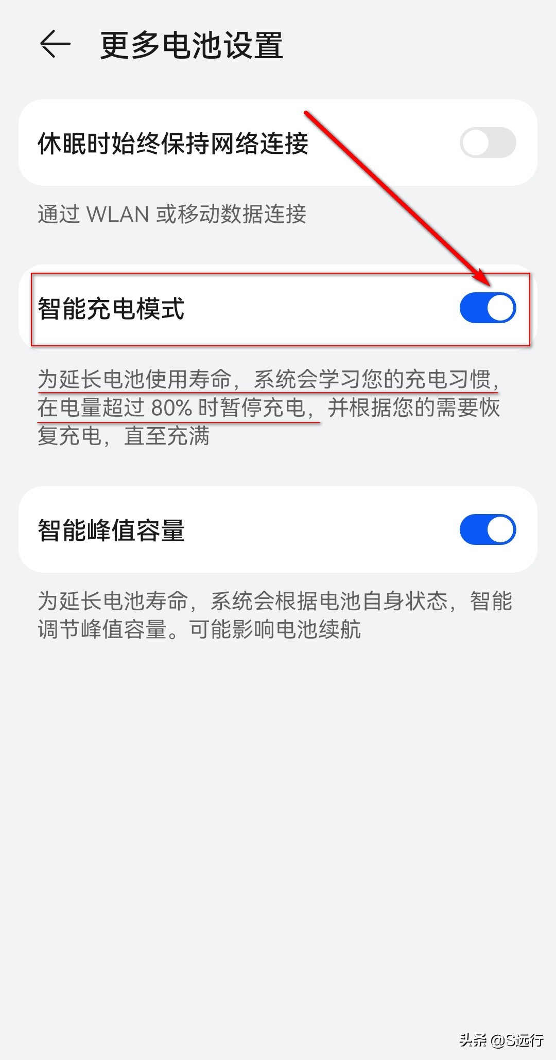 智能充电模式可以有效保护手机电池,延长使用寿命,强烈推荐开启。