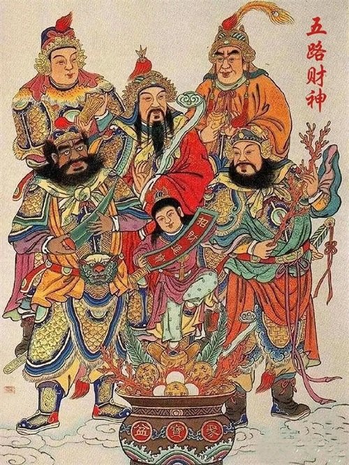 在中国的传统信仰中,五路财神是民间非常崇敬的五位神明,他们分别是东路财神比干、西路财神关羽、南路财神柴王爷、北路财神赵公明、中路财神王亥。这五位财神代表着五个方向,也象征着五方五地的财运。