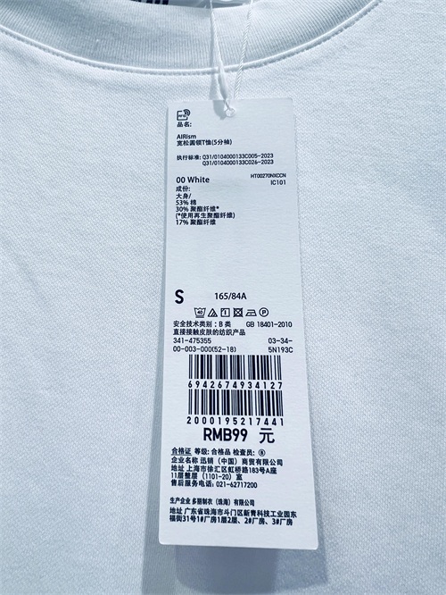 AIRism系列的核心优势在于其革命性的面料技术。这款T恤采用棉与聚酯纤维混纺材质(53%棉+47%聚酯纤维),既保留了棉质的柔软亲肤,又通过特殊工艺实现了“接触冷感”与“速干透气”的双重突破。当肌肤触碰到面料的瞬间,凉意即刻蔓延,仿佛为身体披上一层天然的降温屏障。