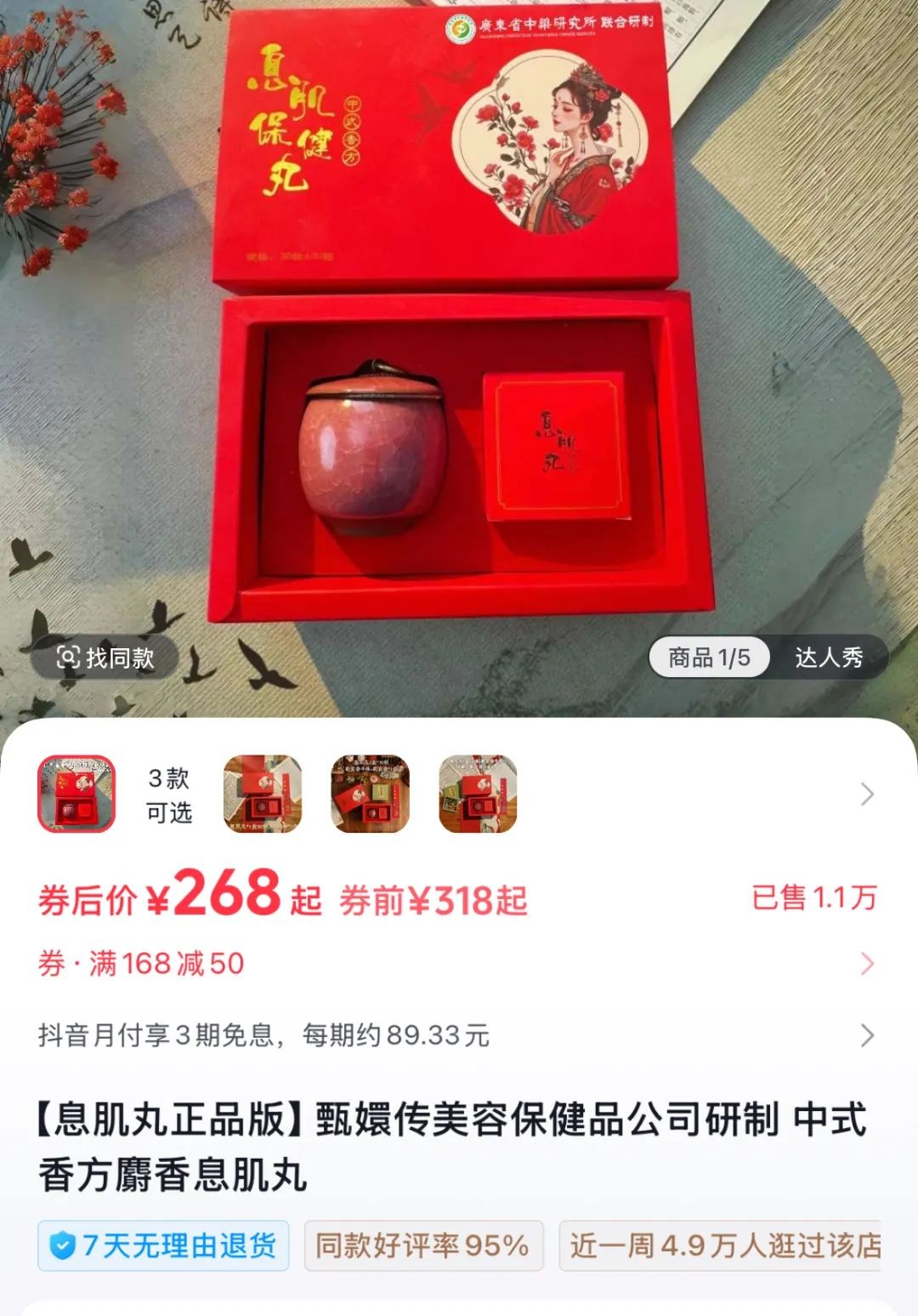其中,某平台的“息肌丸”产品售价268元起,已售1.1万单;另一平台的“息肌丸”产品售价258元,目前已经下架。