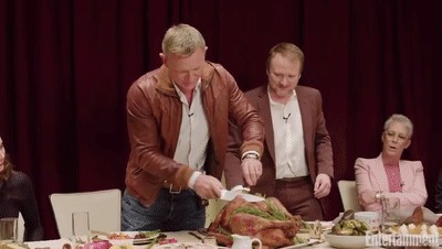 需要注意的是,烤好的一整只火鸡就像北京烤鸭一样,需要有人“片”,这个动词英文多用carve,千万不要把它翻成“雕刻”,以免贻笑大方。
