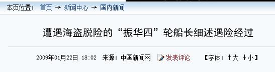 【3】中国新闻网——遭遇海盗脱险的“振华四”轮船长细述遇险经过