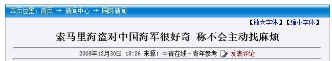 【4】中青在线——索马里海盗对中国海军很好奇 称不会主动找麻烦