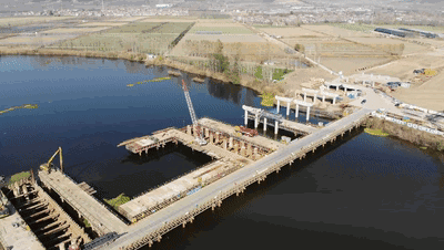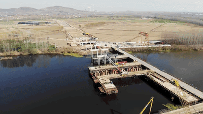 目前不老河大桥下构施工完成了70%。下一步,将进行不老河大桥钢桁架和上部结构的施工,稳步地开展下构施工。另外,大洞山隧道也在稳步推进中,为今后206国道徐州改线工程开通提供保障。