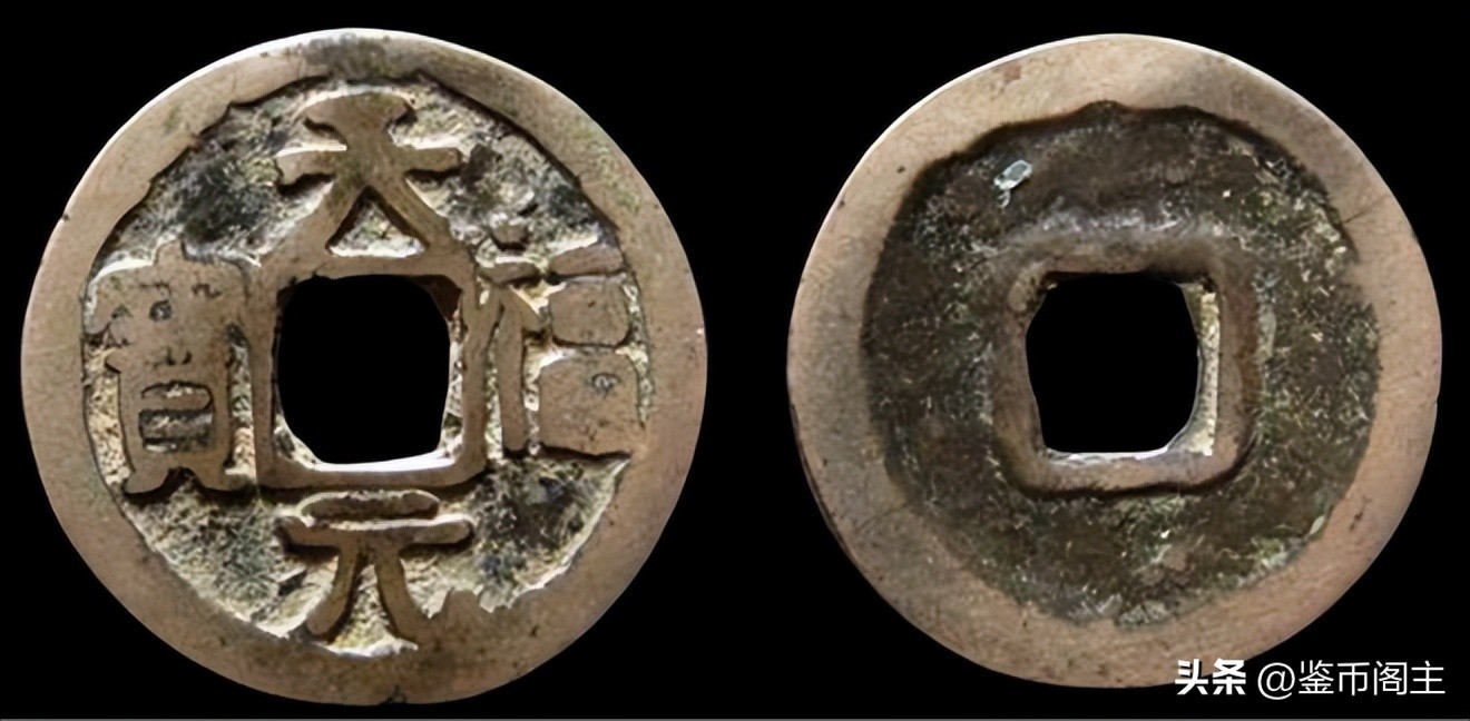 官造的大钱是光背,就是背面光平,正面为“天福元宝”隶书,直径约2.2厘米,重2克左右,整体铸造还是比较精美,目前市场上品相完美的可价值16000元左右,但是民造的比较粗糙,目前市场上品相完美的价值在8000~13000元左右。