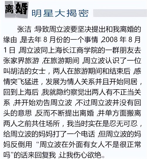一时间,张洁将周立波这些年所做过的不齿行为,都一一放在网上,好让大家评评理,他怎配过上幸福的生活。