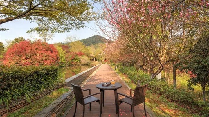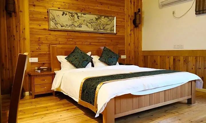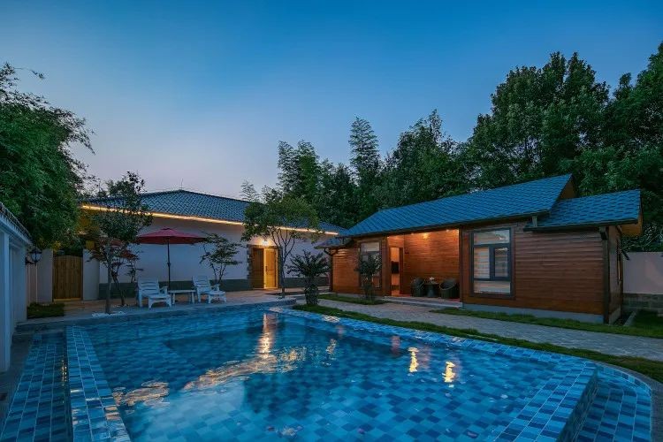 在沿河一岸,一栋一栋的古雅的中式院落掩映在茂密的竹林和古树之中,黄墙黛瓦、庭院深深,古香古色的装修布置,打造出独具质感的空间,不论是休闲,还是商务,都是一级的体验。
