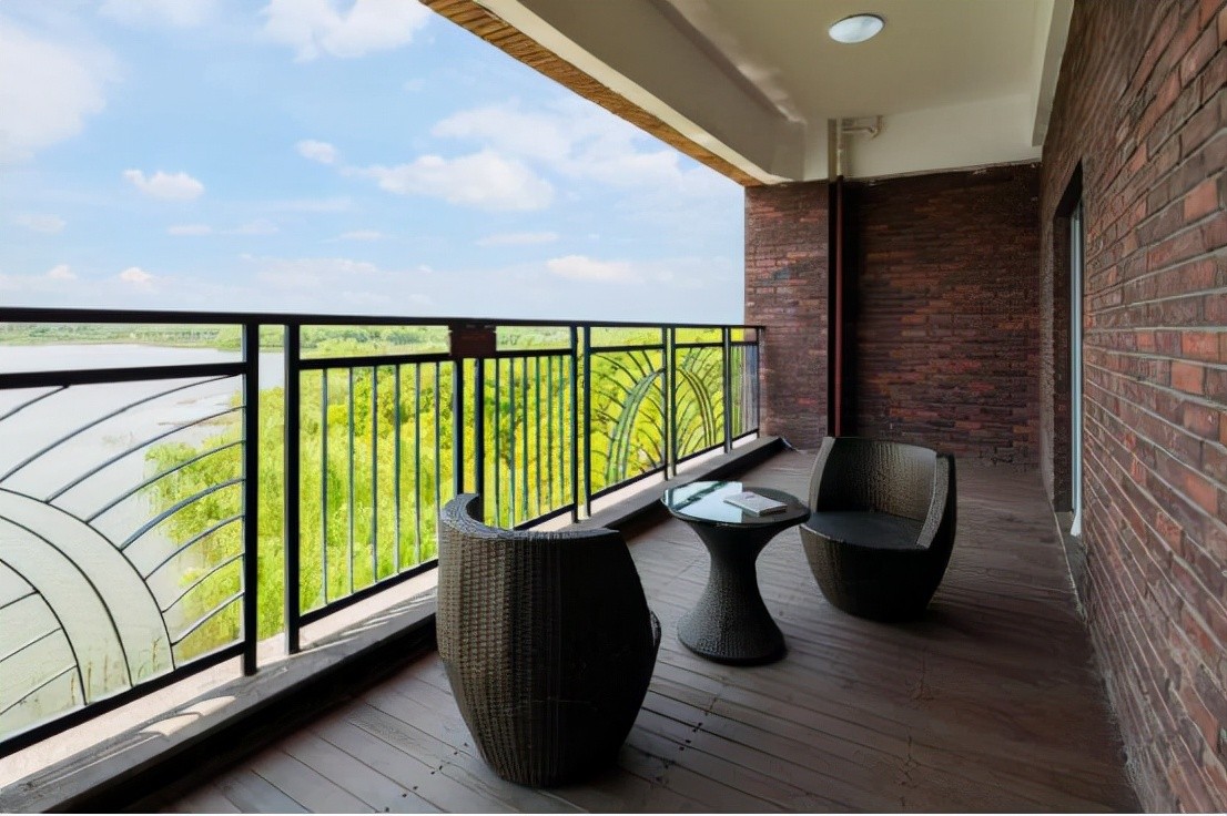 “睡在湖岛边,醒在风景里。”东南风情酒店,每一间房都毫无吝啬地置入了落地式全景玻璃窗和阳台,可以180°将天屿湖的景致一览无余。