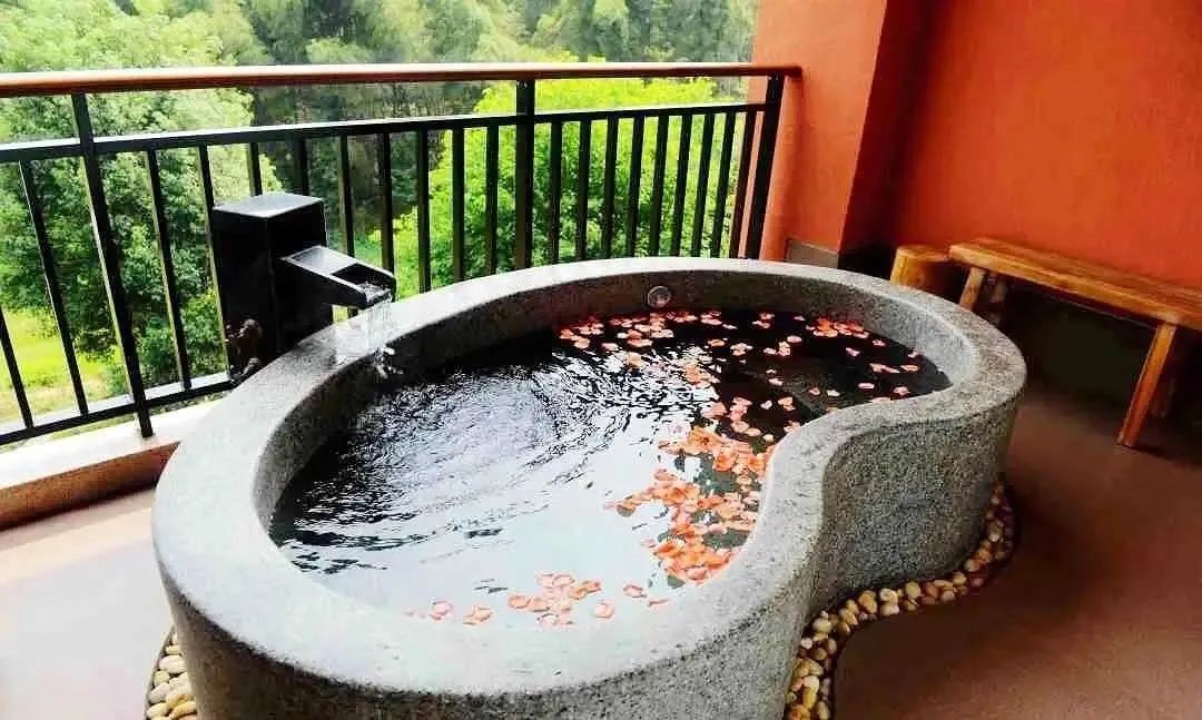 大家都说来春泉庄体验过私汤,才知道什么是极致的温泉体验。来自五龙山的天然温泉水被引到了酒店的客房内,无需出门,躺在阳台上就可以泡温泉。