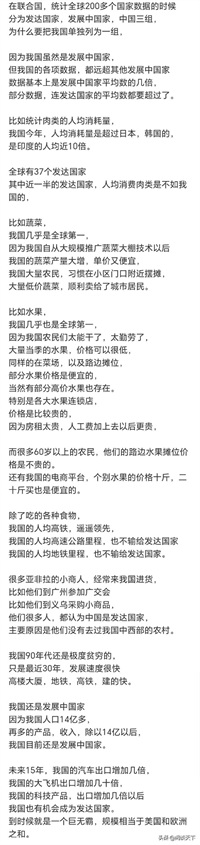 不过中国仍然属于发展中国家,毕竟人均收入还是太低了