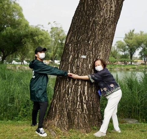 跟普通人出游时候一样,邓超和妈妈也手挽手丈量起了大树的维度。有着邓超这个成功又孝顺的儿子,超妈也是妥妥的人生赢家啊!