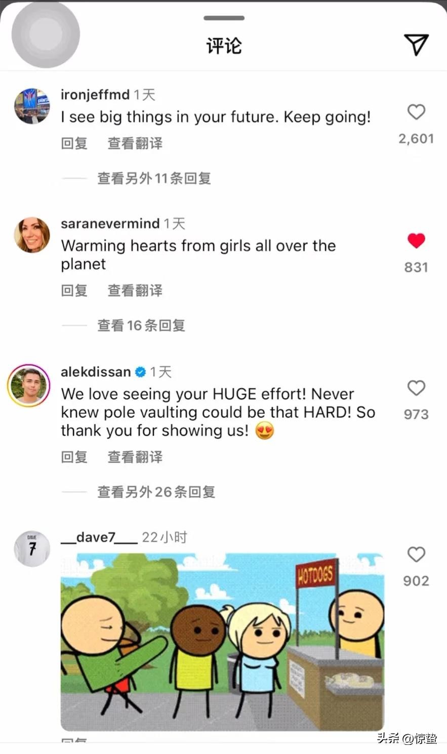 事实上,阿米拉蒂是一位优秀的撑竿跳选手,他2022年8月以5.81公尺打破法国青少年撑竿跳高纪录,因此他的落败让许多粉丝深感遗憾,许多人也涌入他的IG留言,为他加油打气。