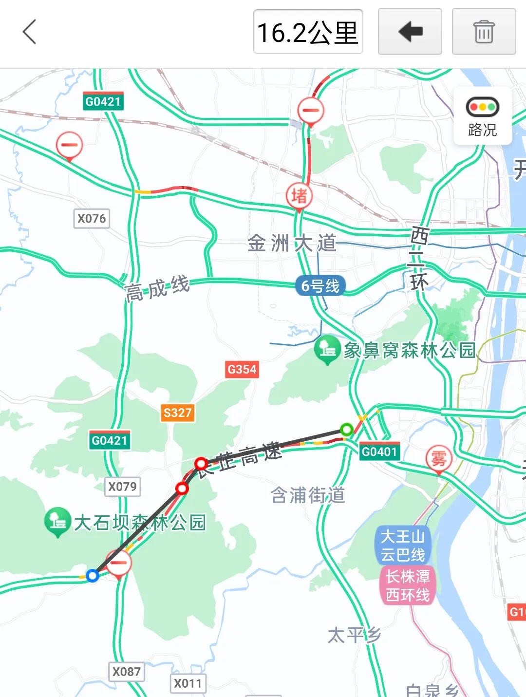 (说明:以上拥堵路段长度是在地图上实时测量得到。)