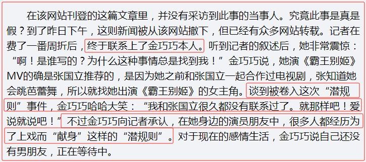 只是不曾想,网上有位网友似乎听到心里面了,他在博客中写到,金巧巧和张国立存在“潜规则”交易。