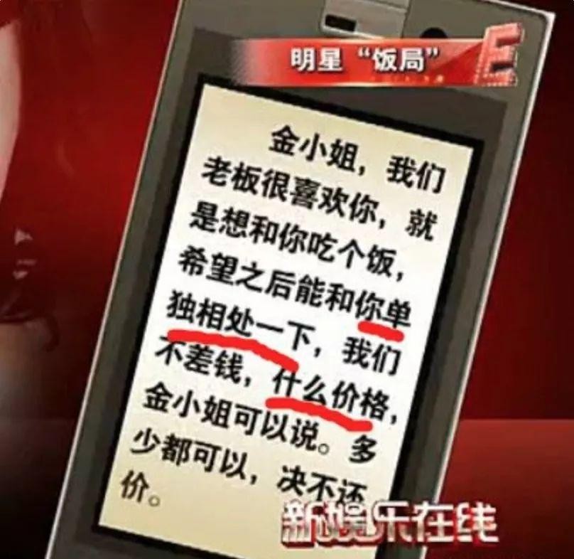 “金小姐,我们老板很喜欢你,就是想和你吃个饭,希望之后能和你单独相处一下,我们不差钱,什么价格,金小姐可以说。多少都可以,绝不还价。”