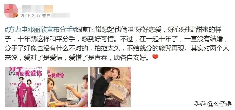 2016年1月,邓丽欣与方力申庆祝相识相恋十周年。