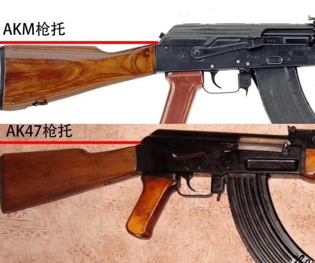 从视觉上看,AKM 的枪托角度与机匣平行,而不是像 AK47 那样向下倾斜。这样可以增加支撑力,从而提高投篮稳定性。