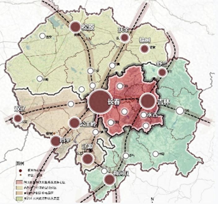 未来的吉林,将以长春为主,联动吉林、四平、松原、辽源、梅河口,建设长春现代化 都市圈,打造东北亚区域合作中心和国家对外开放枢纽、国家交通装备制造 基地和北方科创中心、农业现代化排头兵和城乡融合发展示范区、东北振兴 的战略引擎和绿色崛起新高地。