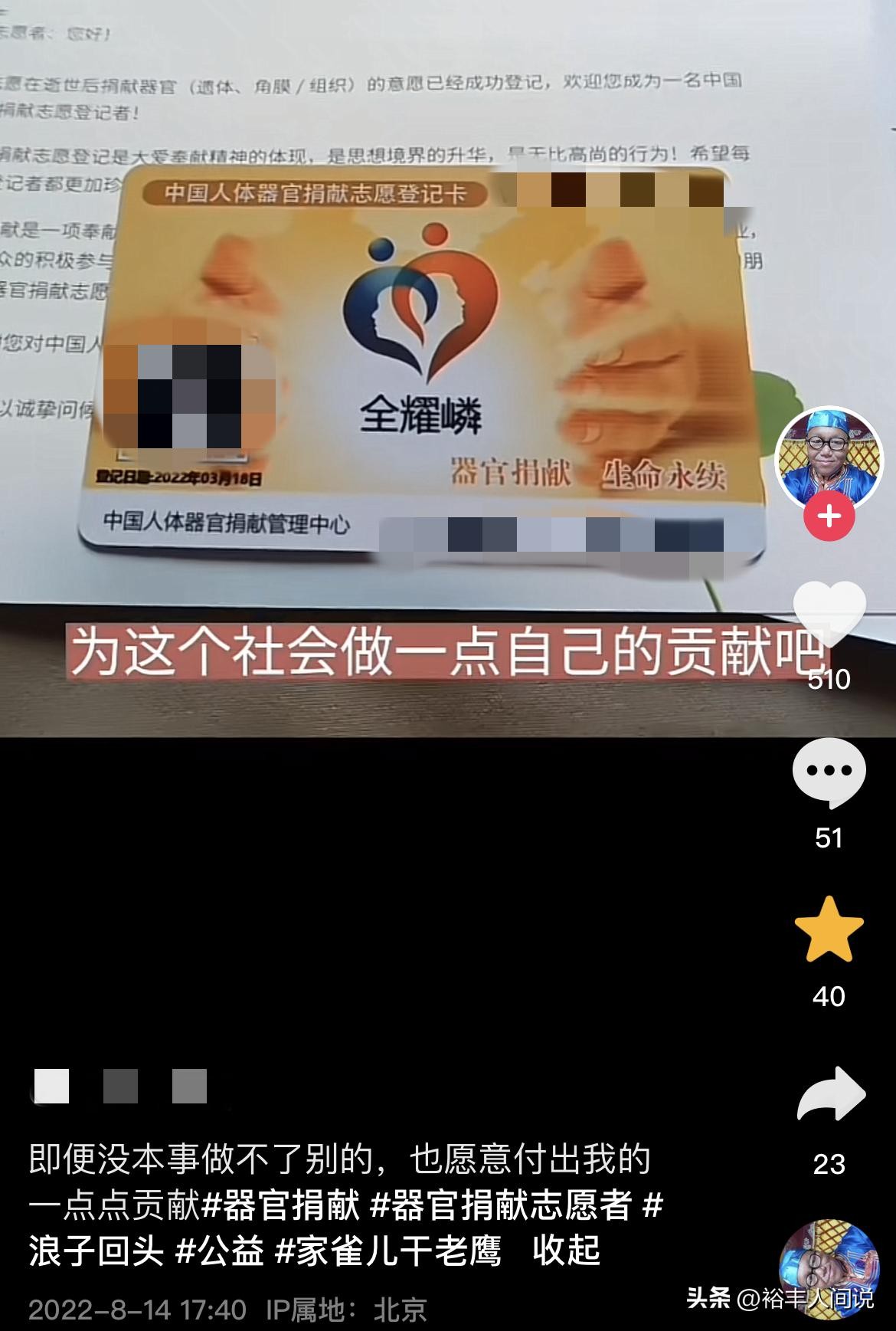 2022年,那时候的头巾哥还意气风发,并没有所谓的疾病缠身,但他毅然决然做出了一个伟大的决定,那就是签署相关的器官捐献,并感慨的说道:即便没本是做不了别的,也愿意付出我的一点点贡献。