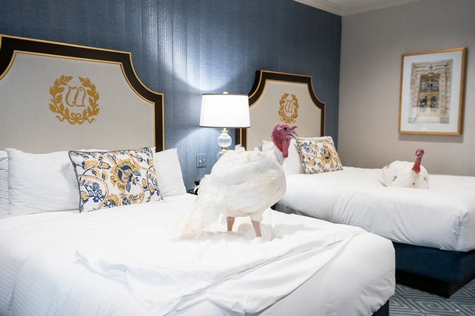 然后在这些火鸡中,挑出来两只重点培养。2019年,最终胜出的两只是Butter和Bread。挑中以后的待遇肯定也是总统级的了,例如住高级宾馆。
