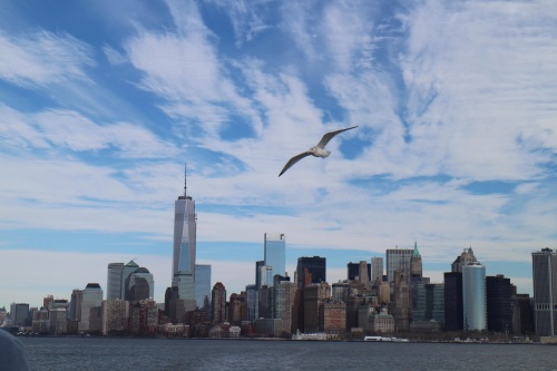 远眺纽约曼哈顿,最高的建筑就是新建世贸大楼