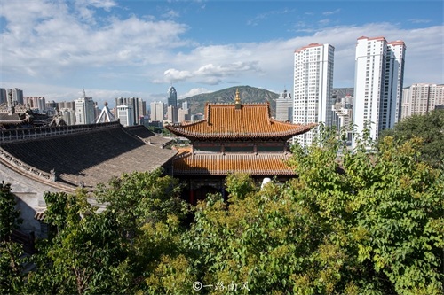 法幢寺依山而建,视野比南禅寺更加开阔,站在观景平台可以清楚地欣赏西宁市区的城建风貌,将现代与古典同时收入眼帘。