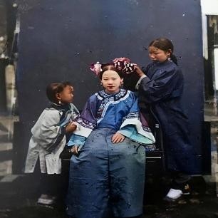清朝有钱人家的小姐,在那个封建社会,有钱人家里都会养着许多仆人,有钱人是不需要动手干活的,就连梳头发都有仆人帮忙梳理。