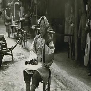 清末满族新娘风俗照,旁边是她的仆人。