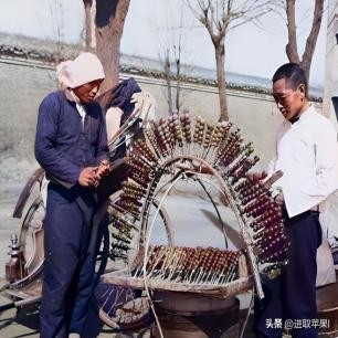 京城一条街道边上一名卖糖葫芦的小商贩。