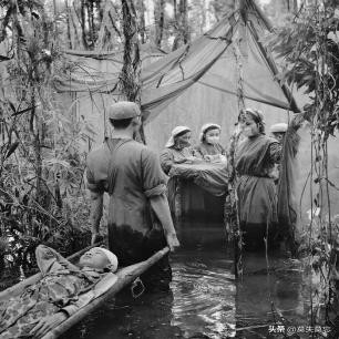1970年,柬埔寨人民被美国轰炸机炸伤,在红树林沼泽搭建临时手术室
