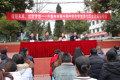 为推动职业教育和普通教育协调发展、相互融通,为学生提供多元化成才路径,近日,六盘水市第十四中学“规划未来 成就梦想——升学选择与职业发展指导会”隆重举行。