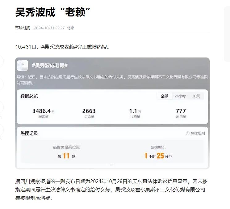 眨眼时间来到了2024年,吴秀波名下的网红牛角村面包店,也因拖欠贷款和储值卡结算问题,让他被牵连成为失信执行人,限制高消费。