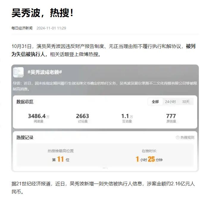 而吴秀波不仅前期投入的大量资金打了水漂,还因不二公司是他的独资公司,导致了他需承担连带责任,被强制执行4.66亿元。