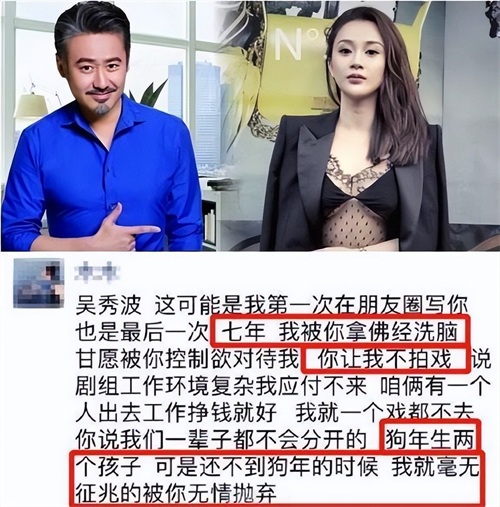 她在文中称,自己在过去的七年里,被吴秀波用佛经洗脑,为了所谓的感情,直接放弃了自己的演艺事业。