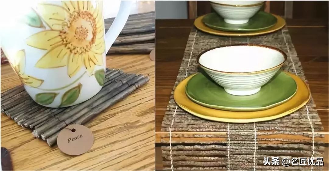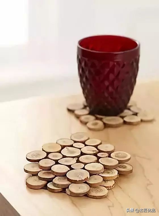 粗细均匀、比较直挺的树枝,用细铁丝或者棉绳编在一起,就是非常实用的杯垫