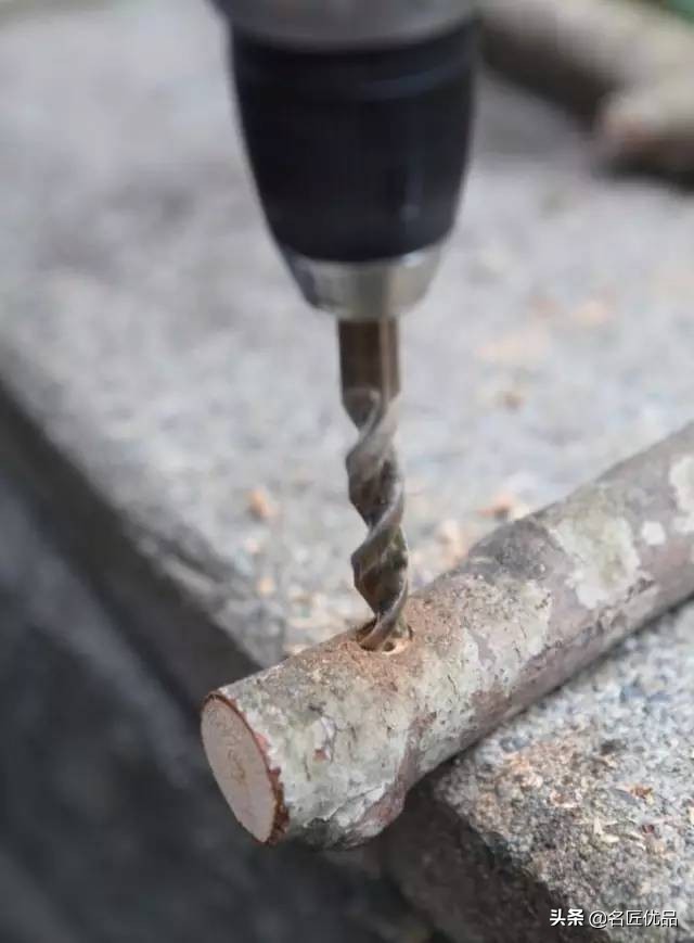 将树枝钻一个小洞