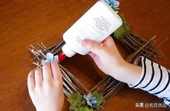 然后用胶水将树枝粘到原木相框上,直到完全覆盖,最后再把塑料花等小装饰也粘贴上去,一个很有原始味道的田园风相框就DIY完工啦~是不是超简单呢,喜欢就跟着下面的图解来试试看吧~~~