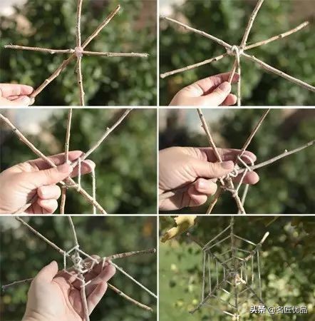 三根树枝和一根棉线打造的简易蜘蛛网