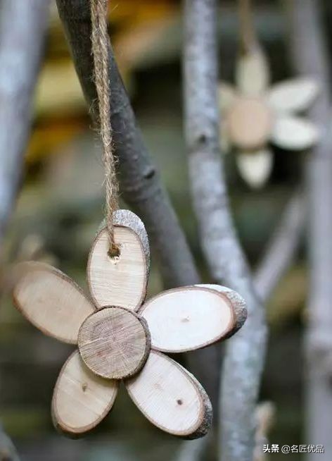 比较粗的枝条可以加工成小圆木片,制作成小小的建筑物或者可爱造型,会是孩子们爱不释手的玩具
