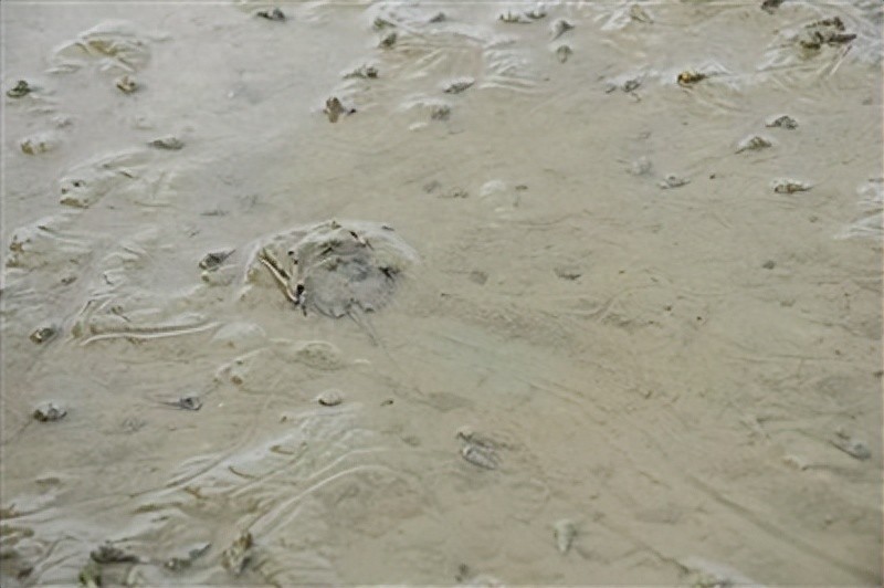 “退潮之后的滩涂上很容易看到‘鲎道’。”刘毅现场给大家介绍,由于鲎的体形较为特殊,它们在滩涂上爬行时会留下“川”字形痕迹,只要顺着“鲎道”一路找去,大概率都能找到鲎。