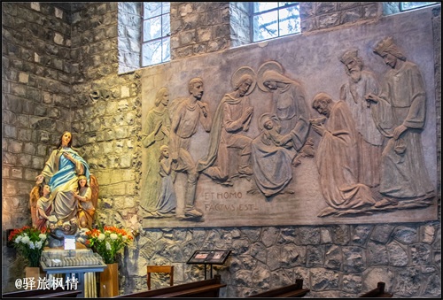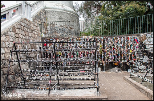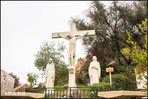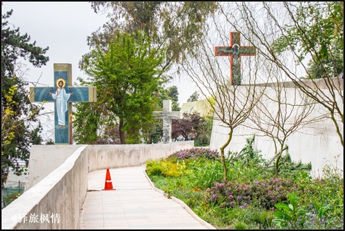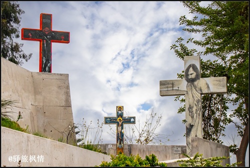 圣母像基座可以入内,附近还有一座小教堂,路边两侧立有大量十字架,形式图案各有特色,南美人的宗教热情由此可见一斑。