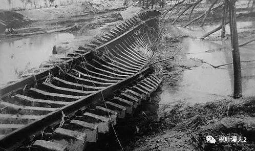 被冲毁的铁路与列车