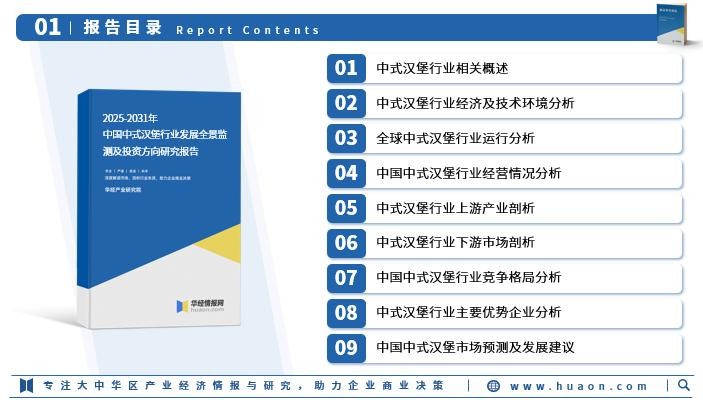 华经产业研究院研究团队使用桌面研究与定量调查、定性分析相结合的方式,全面客观的剖析中式汉堡行业发展的总体市场容量、产业链、经营特性、盈利能力和商业模式等。科学使用SCP模型、SWOT、PEST、回归分析、SPACE矩阵等研究模型与方法综合分析中式汉堡行业市场环境、产业政策、竞争格局、技术革新、市场风险、行业壁垒、机遇以及挑战等相关因素。根据中式汉堡行业的发展轨迹及实践经验,精心研究编制《2025-2031年中国中式汉堡行业发展全景监测及投资方向研究报告》,为企业、科研、投资机构等单位投资决策、战略规划、产业研究提供重要参考。