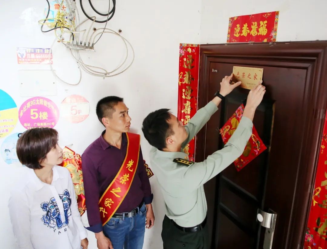 家庭悬挂光荣牌,退役后发放《退役军人优待证》。