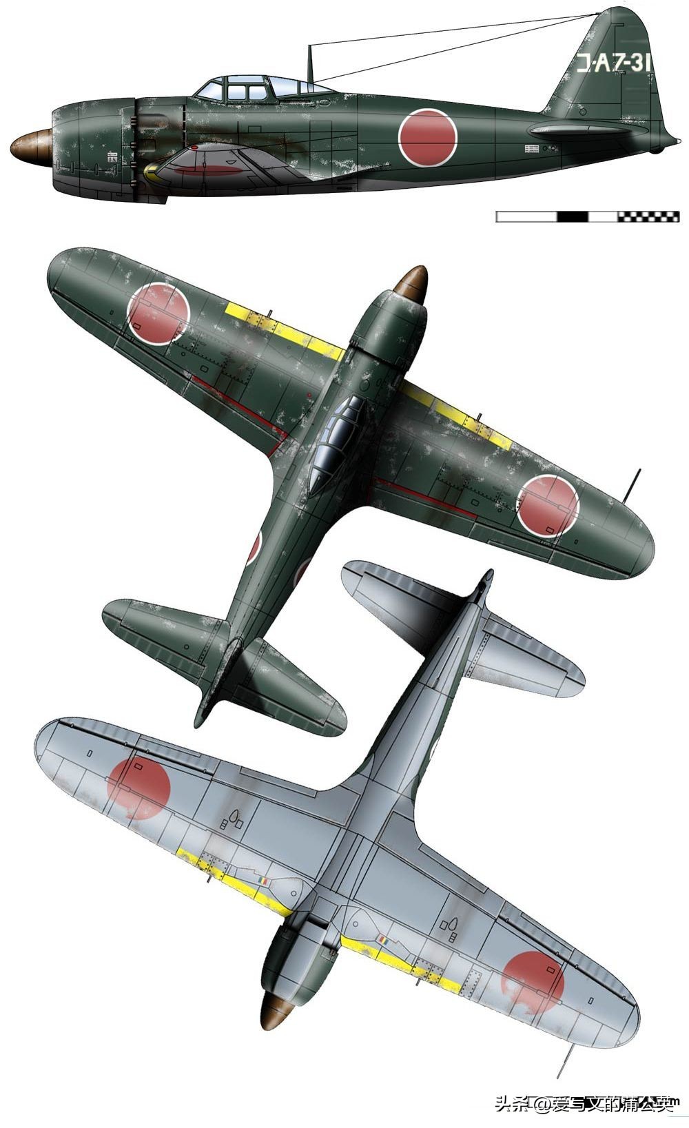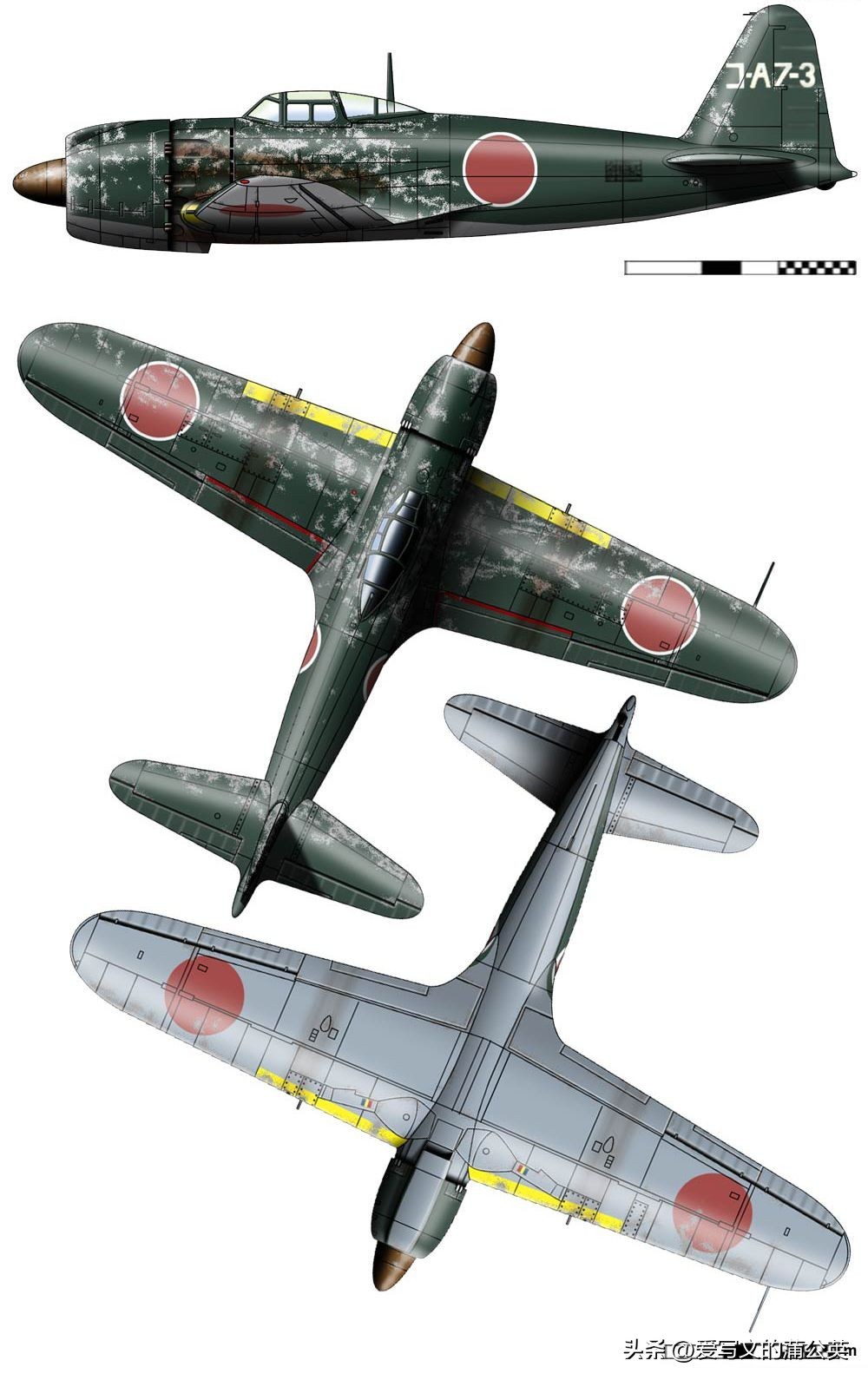 第一架搭载Ha-43发动机的原型机于1944年10月13日起飞,最高时速达到628公里,操控性能优于A6M Zero。生产不久后就开始了,但由于盟军的海军封锁,日本名古屋地区的资源不断减少,发生了地震,最终只生产了八架飞机。