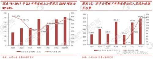 双十一期间,苏宁易购通过双线模式提升用户体验,门店以及线上销售额持续高增长,双十一靓丽的数据表现公司强劲的增长动力以及潜力。双线模式体验最佳,效率最优,零售扭亏为盈,盈利环比提升,背靠阿里,金融业务迎放量增长,目标价19.61元,维持“买入”评级。苏宁云商将通过线下苏宁云店/易购服务站等提高收入基数,利用差异化的产品/高品质的服务提升毛利率水平,线上加强运营,强化与竞争对手相似品类的价格优势。苏宁与天天快递优质物流资源,与阿里对接之后,全面开放,将贡献显著收入,同时,集团在金融全面布局,交易额将加速成长。预计2017-2019年公司实现营业收入1845.23/2263.96/2846.16亿元,同比增长24.19%/22.69%/25.72%;归属母公司净利润为9.44、19.48、45.31亿元,同比增长34.03%/106.30%/132.63%。